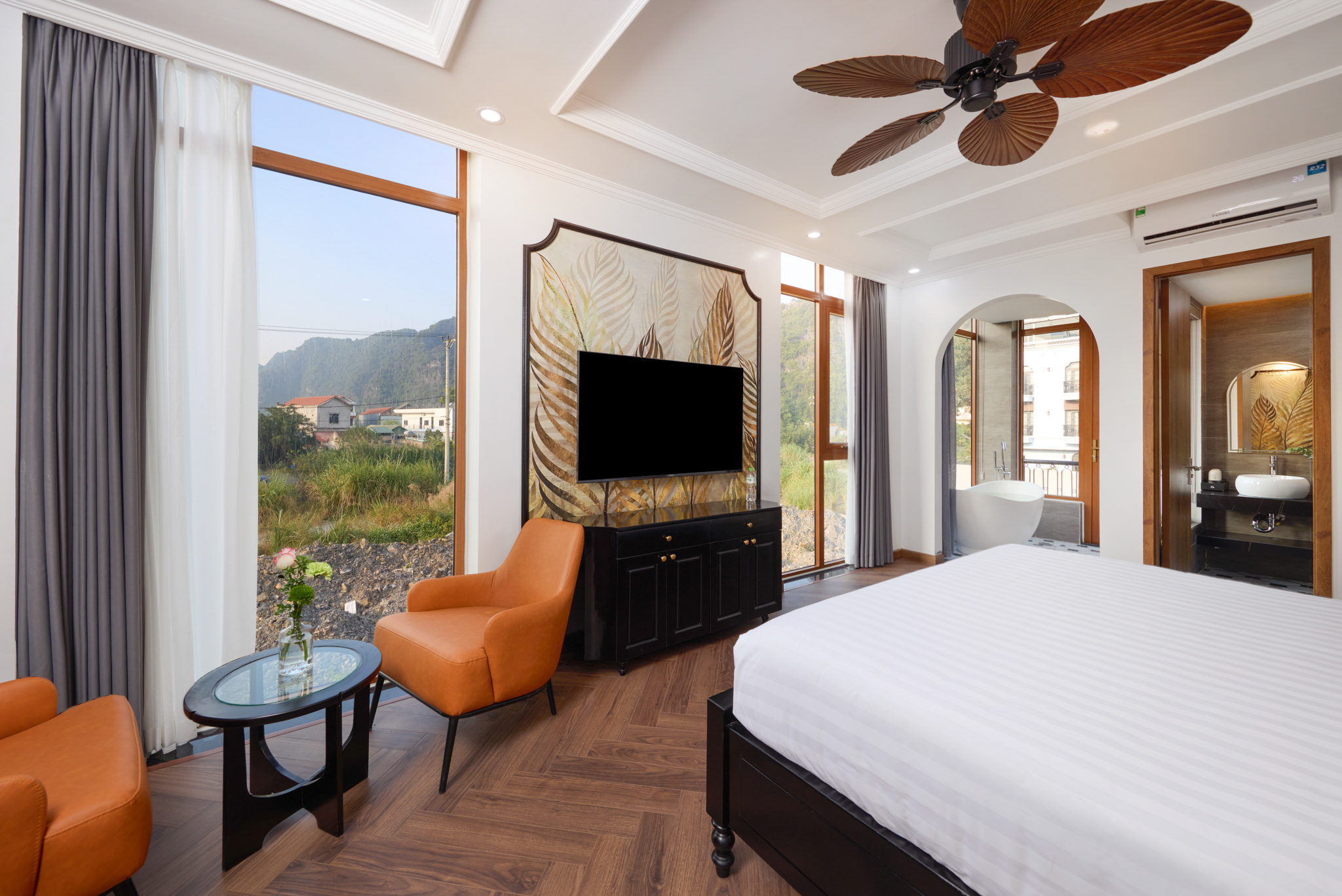 Khám pháNằm yên tĩnh trên các tầng cao, mở ra ban công riêng đón trọn sắc xanh của núi rừng. Không gian dịu dàng, thoáng đãng, nơi du khách có thể chậm lại nhịp sống, hít thở không khí trong lành và tận hưởng những phút giây nghỉ ngơi thật êm đềm giữa thiên nhiên núi rừng Tam Cốc.