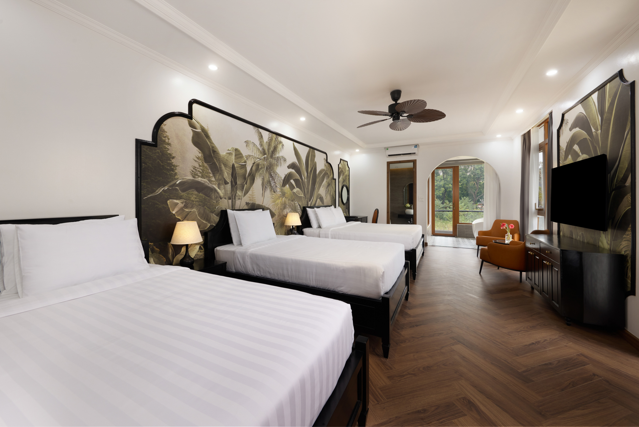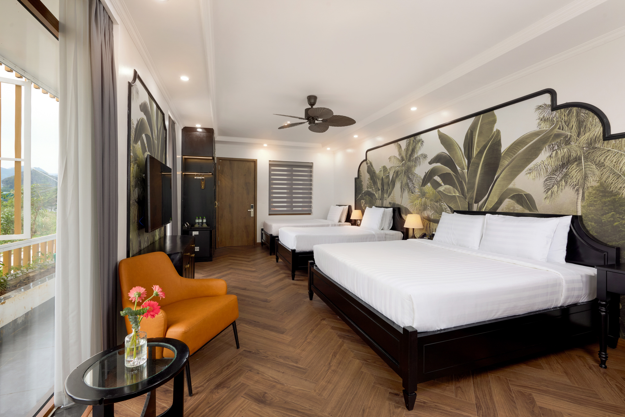 Khám pháTọa lạc tại tầng cao, mang đến không gian nghỉ dưỡng thoáng đãng với tầm nhìn núi rừng tuyệt đẹp. Phòng được thiết kế tinh tế cho nhóm khách 3 người, có ban công và bồn tắm riêng tư giúp du khách thư giãn trọn vẹn sau một ngày dài. Minibar đa dạng và các dịch vụ đặc biệt đáp ứng mọi nhu cầu trong thời gian lưu trú.